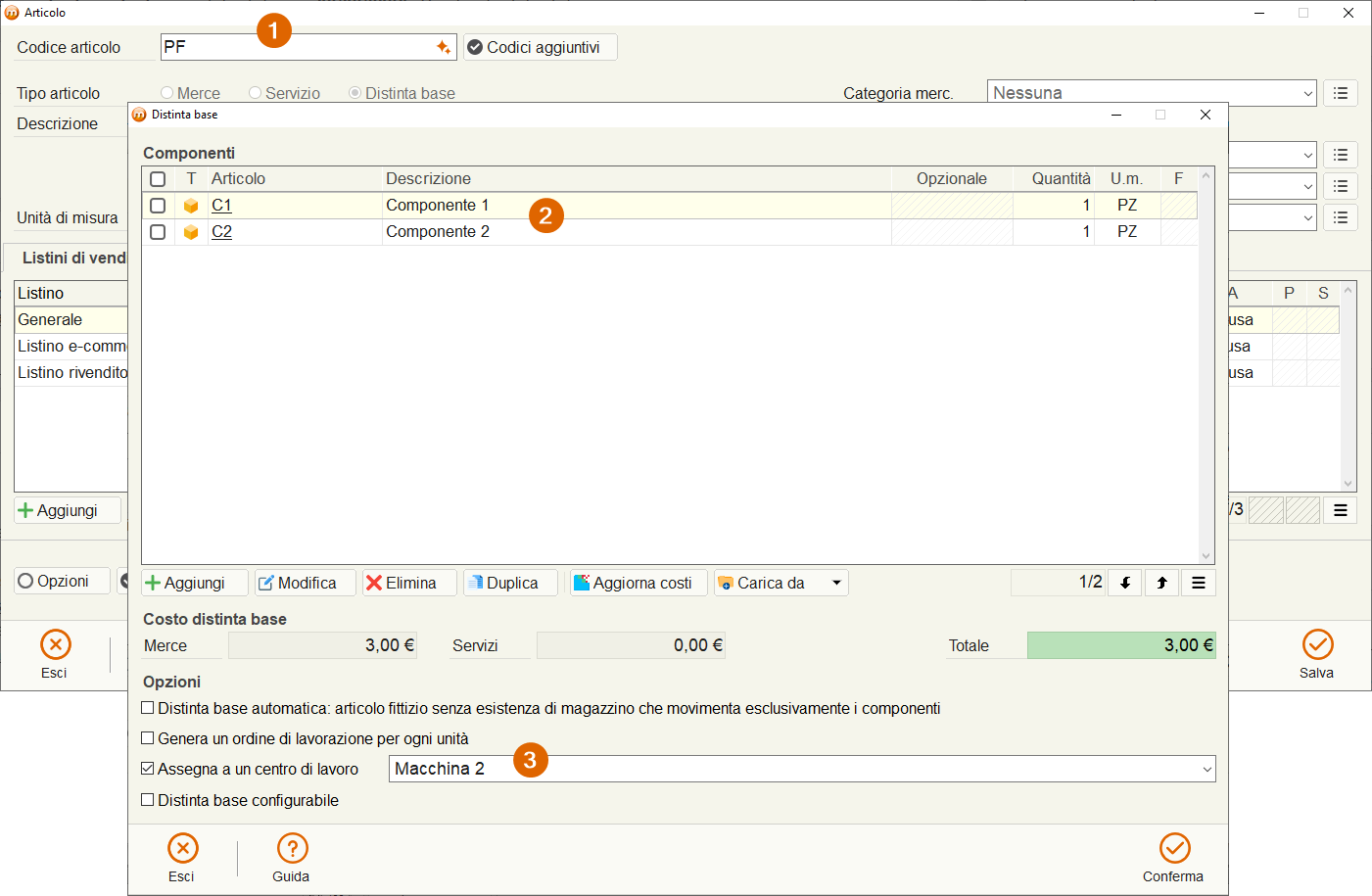 Qui sotto riportiamo una distinta base di esempio che utilizzeremo nella guida: