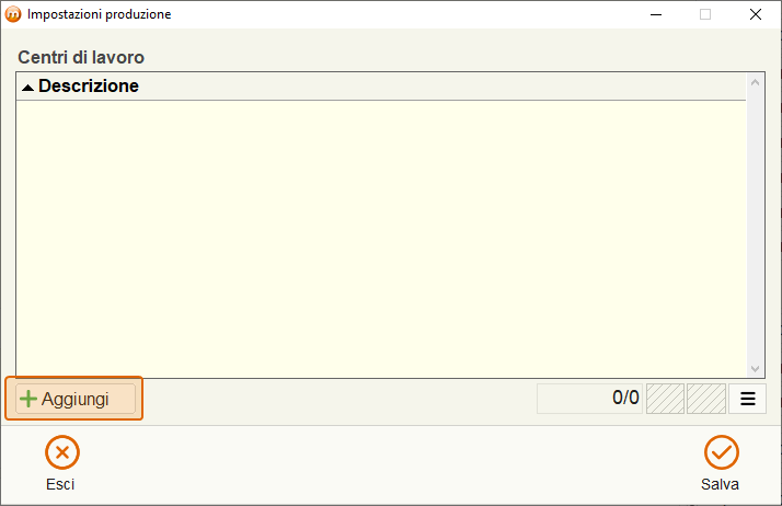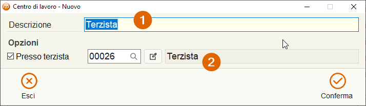 - Descrizione: in questo campo inserire la descrizione del centro di lavoro.